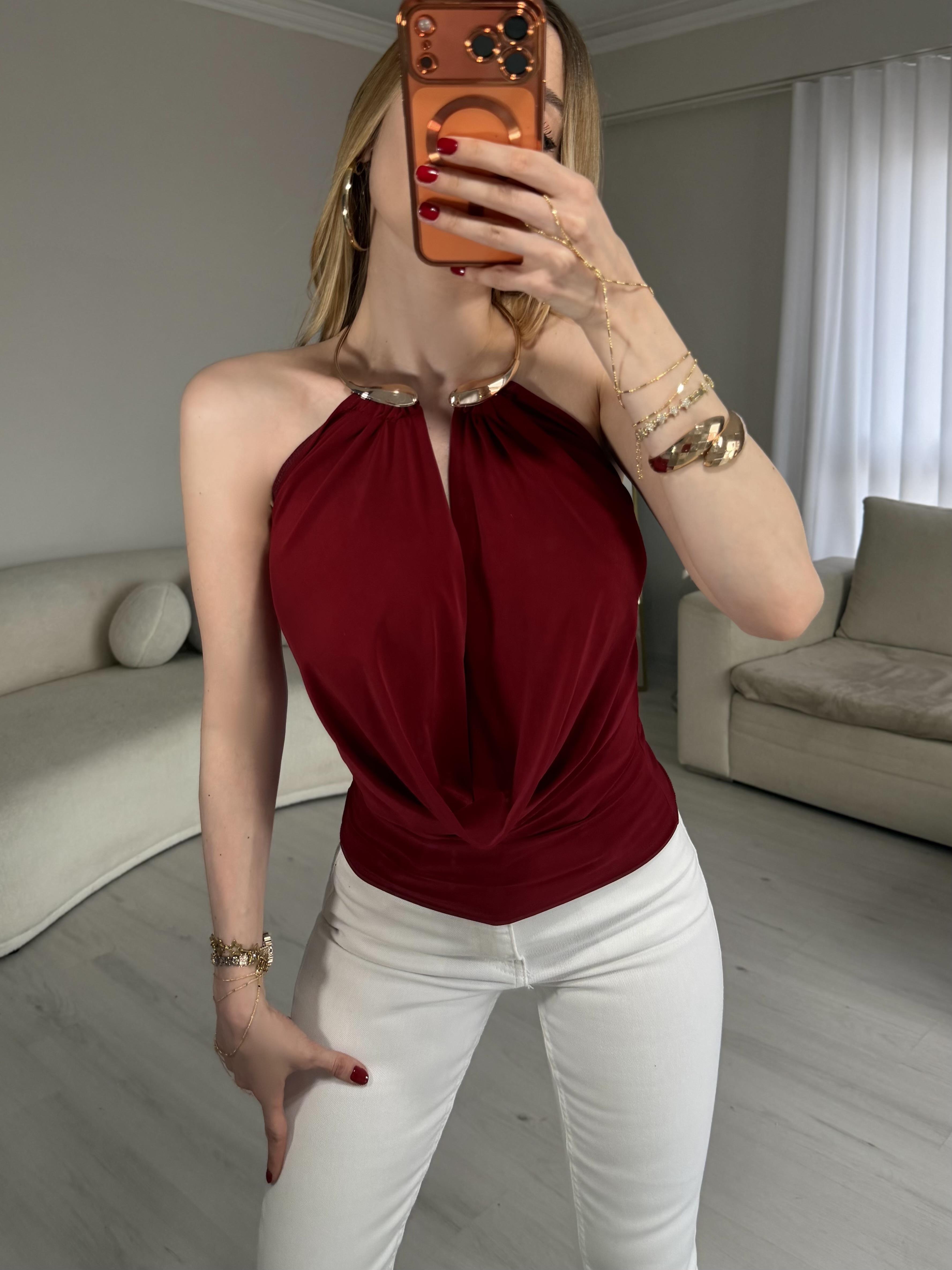 Golden Frame Glow Drapeli Bluz Kahve Golden Frame Glow Drapeli Bluz Beyaz Golden Frame Glow Drapeli Bluz