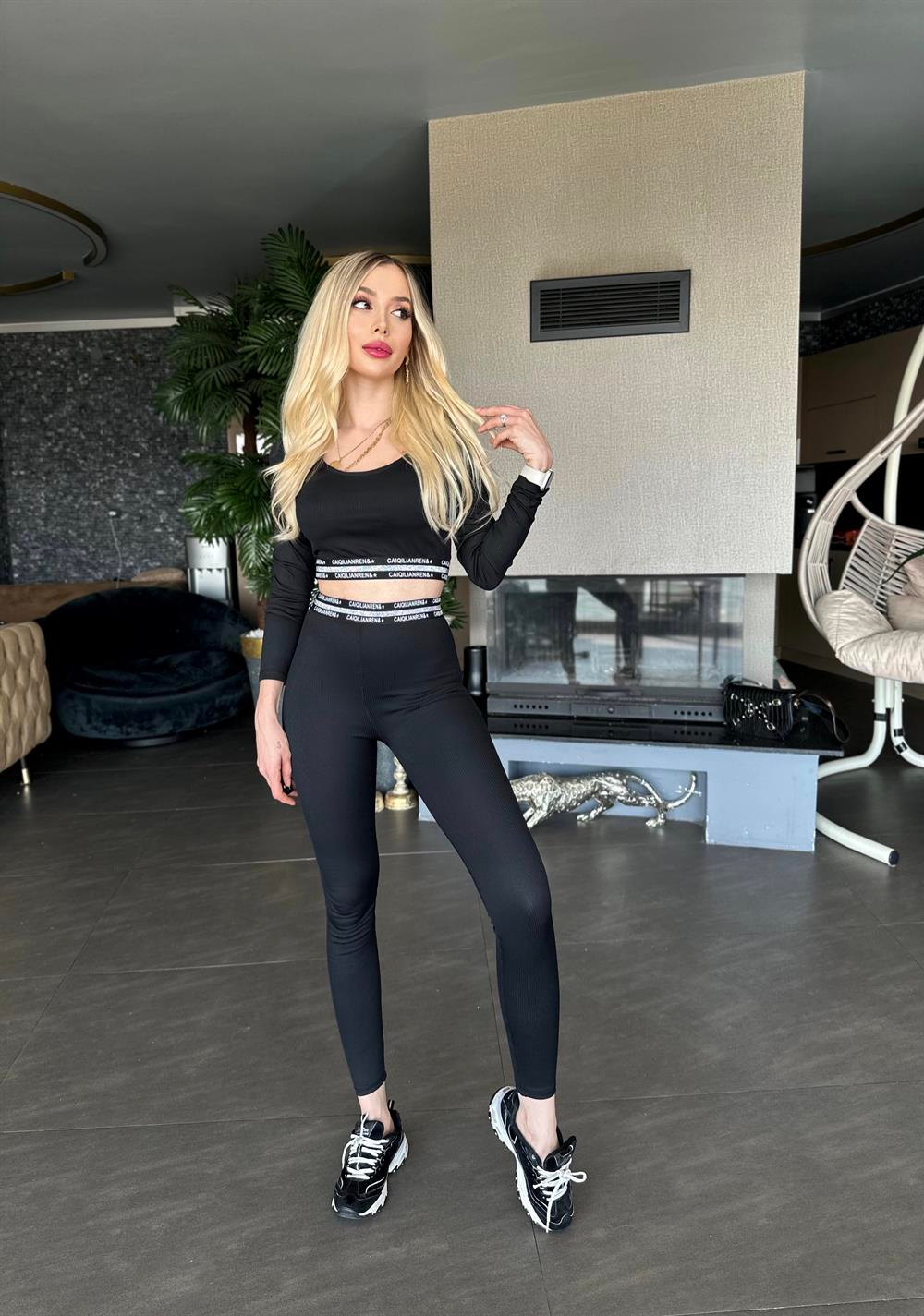 Kaş Korse Kumaş Simli Lastik Detaylı Tayt Takım (10071)